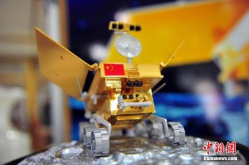 12月15日,在沈陽一商場內(nèi)展示了中國月球車1:12模型“玉兔”號(hào),并引起市民購買熱潮。當(dāng)日4時(shí)35分,嫦娥三號(hào)著陸器與巡視器分離,“玉兔號(hào)”巡視器順利駛抵月球表面。中新社發(fā) 于海洋 攝