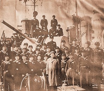 正月初七,也就是公歷2月20日,編隊(duì)到達(dá)九江。下午2時(shí)30分,毛主席終于登上了我們的“洛陽”艦。他走到我們中間,和藹地詢問我們衣服夠不夠穿,飲食習(xí)慣不習(xí)慣,津貼夠不夠花。軍艦過小孤山時(shí),主席舉起望遠(yuǎn)鏡,邊望邊說:“過去這邊的水道很窄,現(xiàn)在變寬了,水道變了,世界也變了!碑(dāng)主席得知“洛陽”艦的排水量只有1000噸時(shí),他沉思了片刻,對(duì)我們說:“將來我們的海軍要有大艦!”一句話說得我們熱血沸騰。