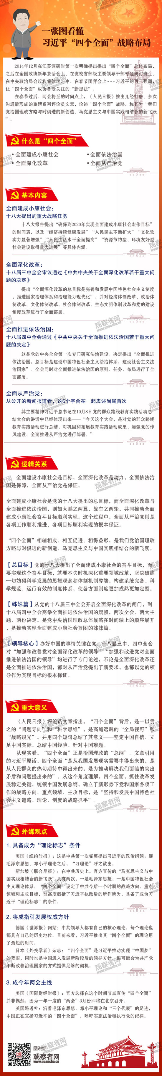 那么,習近平“四個全面”戰(zhàn)略布局到底是什么?四個全面之間有什么邏輯關系?有什么重大意義?外媒如何看待?觀察者網(wǎng)帶你一一看來。(來源:觀察者網(wǎng))