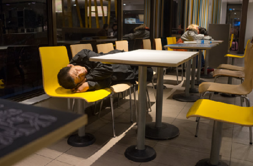 盡管其他餐廳會(huì)把流浪者趕出去,但麥當(dāng)勞基本上對(duì)丁新風(fēng)這樣的流浪人員持接納態(tài)度。自麥當(dāng)勞在亞洲地區(qū)推出更多24小時(shí)門店之后,流浪人員紛紛云集。麥當(dāng)勞在中國(guó)內(nèi)地的2200家餐廳有一多半都是24小時(shí)營(yíng)業(yè)。