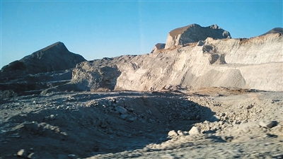 檢測點再往北,道路兩側的山嶺上閃爍著星星點點燈光,挖掘機正在用杵子一下下地鉆山,“哐當、哐當”之聲不絕于耳。三五下后,大片石料沿著山體傾瀉而下。