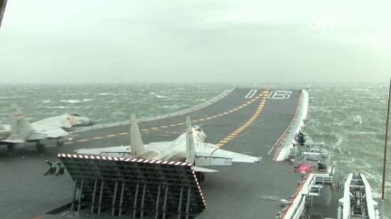 資料圖:海軍遼寧艦在渤海某海域進行艦機融合訓練。