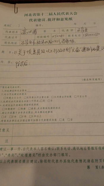 15名人大代表建議