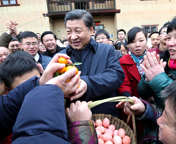 2月2日,習近平到井岡山看望老區(qū)鄉(xiāng)親,向大家拜年,一一熱情握手。新華社記者 蘭紅光 攝