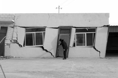 由于地面塌陷導(dǎo)致房屋變形嚴(yán)重。