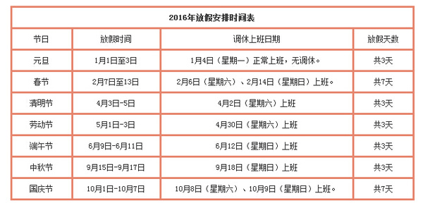 國務院2016放假安排時間表_2016年放假安排時間表