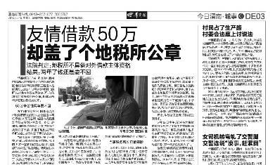 今年50歲的吝云飛在臨渭區(qū)交斜鎮(zhèn)有生意。他告訴華商報記者,2013年初,交斜地稅所撤并到故市地稅所,兩人相識偶有交集。2013年6月24日,張小宏說需要上繳稅款提出借款50萬?紤]到自己的生意以后要經(jīng)常和地稅所打交道,吝提出借錢可以,但必須加蓋地稅所公章,還要有擔(dān)保人。張滿口答應(yīng)。