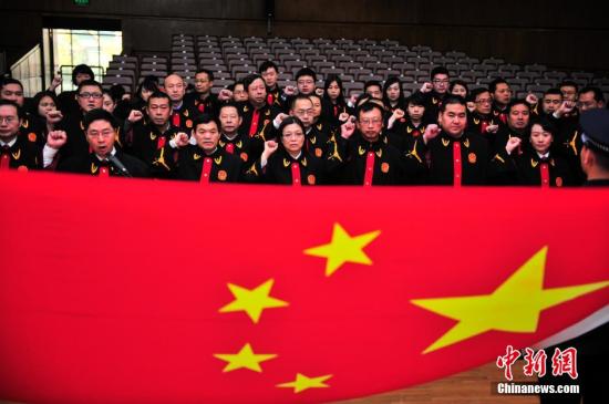 資料圖:1月11日,昆明市中級人民法院首批90名入額法官舉行集體宣誓,標志著云南省第一批員額制法官正式誕生,司法改革進入新階段。法官員額制,是按司法規(guī)律配置司法人力資源,實現(xiàn)法官隊伍正規(guī)化專業(yè)化職業(yè)化,落實司法責任制的重要改革舉措。中新社記者 劉冉陽 攝