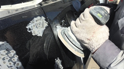 2月26日中午,19輛“大切”停放在修車行院內(nèi),五六名修車工人正在拆卸其中一輛大切的車門,一旁三輛“大切”剛噴完漆,外觀和新車幾無差別,還有幾輛剛做完鈑金。