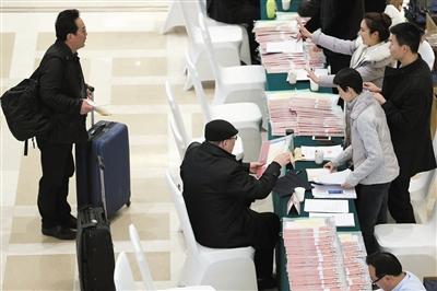 昨日是政協(xié)委員報到第一天,記者在北京會議中心看到,委員在經(jīng)過安檢后進(jìn)入報到大廳,按照各自界別進(jìn)行簽字、領(lǐng)資料的工作流程,之后,一些外地委員直接入住會議中心。