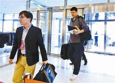 政協(xié)委員姚明現(xiàn)身北京會議中心體育界別駐地 攝影/本報記者 崔峻