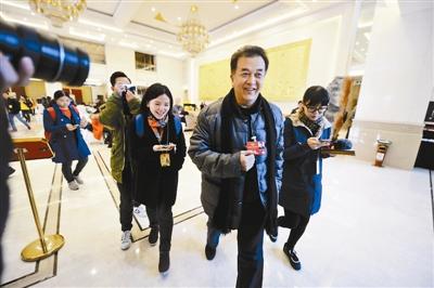 政協(xié)委員黃宏面對記者們的連續(xù)發(fā)問笑而不語 攝影/本報記者 魏彤