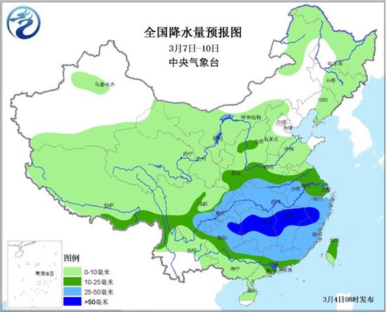 受冷暖空氣影響,7-10日,江淮、江漢、江南、華南北部等地有中到大雨,江南局地有暴雨;10日前后長江中下游部分地區(qū)出現(xiàn)雨轉(zhuǎn)雨夾雪。15日前后,中東部地區(qū)還將有一次雨雪過程。