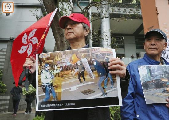 香港民間團(tuán)體“珍惜群組”、“同心護(hù)港”、“的士司機(jī)從業(yè)員協(xié)會(huì)”及一批市民共約50人到法院外示威,高叫“嚴(yán)懲暴徒、還我法治”的口號(hào),要求法院不要姑息暴徒,應(yīng)拒絕黃臺(tái)仰擔(dān)保并將他還押,多名警員在場(chǎng)戒備。