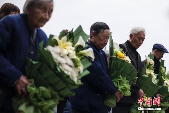 4月4日是清明節(jié),南京大屠殺幸存者伍秀英、楊翠英、岑洪桂、夏淑琴、向遠(yuǎn)松、佘子清、馬庭寶、葛道榮、劉民生、石秀英等以及死難者親屬共50多人,到侵華日軍南京大屠殺遇難同胞紀(jì)念館內(nèi),在哭墻(遇難者名單墻)前舉行儀式,祭奠在侵華日軍南京大屠殺中遇難的親人和同胞。 中新社記者 泱波 攝