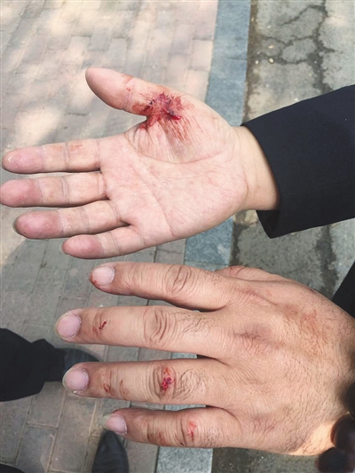 此外,一網(wǎng)友在當(dāng)?shù)卣搲蟹Q,在沖突中,城管的右手也被老人咬破,鮮血淋淋,多個(gè)指關(guān)節(jié)也出現(xiàn)了破損的情況。