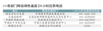 據(jù)介紹,《通知》要求建立人體捐獻(xiàn)器官轉(zhuǎn)運(yùn)綠色通道的工作機(jī)制。國(guó)家衛(wèi)計(jì)委會(huì)同公安部、交通運(yùn)輸部、民航局、鐵路總公司、中國(guó)紅十字會(huì)總會(huì)等有關(guān)部門和單位建立協(xié)調(diào)機(jī)制,設(shè)立器官轉(zhuǎn)運(yùn)綠色通道24小時(shí)應(yīng)急電話。