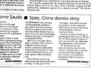 贊比亞政府官方報紙《贊比亞每日郵報》20日頭版刊登來自贊比亞外交部的消息,對17日贊比亞小報“KACHEPA”惡意造謠“中國向非洲賣人肉”事件作出聲明。