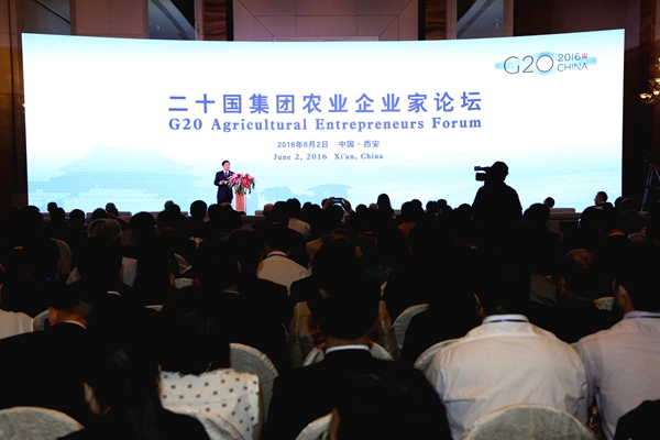 本網(wǎng)訊 6月2日,二十國集團(G20)首屆農(nóng)業(yè)企業(yè)家論壇在西安成功舉辦。農(nóng)業(yè)部部長韓長賦出席開幕式并發(fā)表主旨演講,陜西省省長胡和平致辭,歐盟農(nóng)業(yè)委員會、聯(lián)合國糧農(nóng)組織、國際農(nóng)業(yè)發(fā)展基金、中糧集團、杜邦植保等主要負責人發(fā)言。