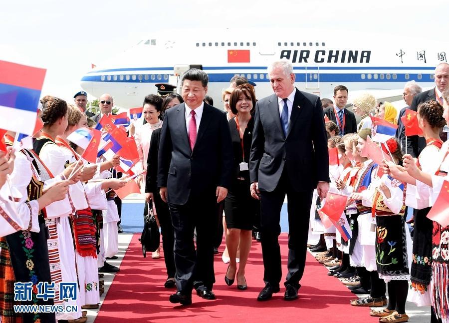 6月17日,國家主席習近平乘專機抵達貝爾格萊德,開始對塞爾維亞共和國進行國事訪問。習近平和夫人彭麗媛在機場受到塞爾維亞總統(tǒng)尼科利奇夫婦的熱情迎接。 新華社記者 饒愛民 攝 圖片來源:新華網(wǎng)