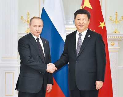 習(xí)近平指出,在《中俄睦鄰友好合作條約》簽署15周年和中俄戰(zhàn)略協(xié)作伙伴關(guān)系建立20周年之際,普京總統(tǒng)即將對中國進行的國事訪問具有特別重要的意義。中方愿同俄方一道,弘揚條約確立的世代友好理念,增進兩國政治和戰(zhàn)略互信,加大相互支持,推動兩國發(fā)展戰(zhàn)略對接和“一帶一路”建設(shè)同歐亞經(jīng)濟聯(lián)盟建設(shè)對接合作,密切在重大國際和地區(qū)事務(wù)中協(xié)調(diào)配合。
