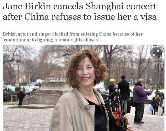 然而,《衛(wèi)報》等媒體卻將此事歸咎于中國害怕長期關(guān)注“人權(quán)”問題的Jane Birkin令中國尷尬。