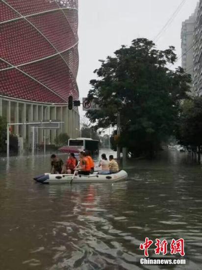 湖北武漢市武昌區(qū)楚河漢街附近市民劃船出行。 供圖
