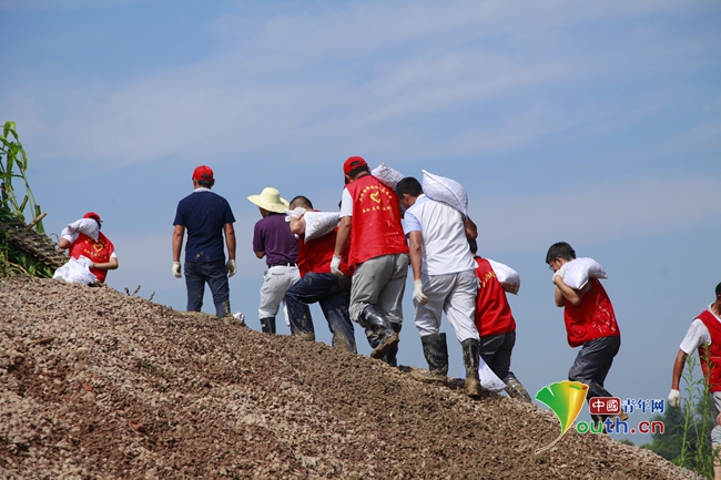 中國青年網(wǎng)肥西7月7日電(記者 周學(xué)磊 見習(xí)記者 魏林甫)在安徽肥西縣派河支流中派橋段大堤上,有這樣一群不到20歲的年輕人:他們或剛走出高考考場(chǎng),或休暑假剛離開高校。他們從來沒有干過重活的肩膀一次次扛起沙袋,不知繭子為何物的雙手一次次擦傷磕破。他們都是“97后”。在汗水雨水洪水中,他們找到了“長(zhǎng)大的感覺”。