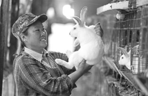 重慶市北碚區(qū)龍鳳橋街道龍車村,微企業(yè)主、村民歐陽芳正在兔舍檢查肉兔生長情況。