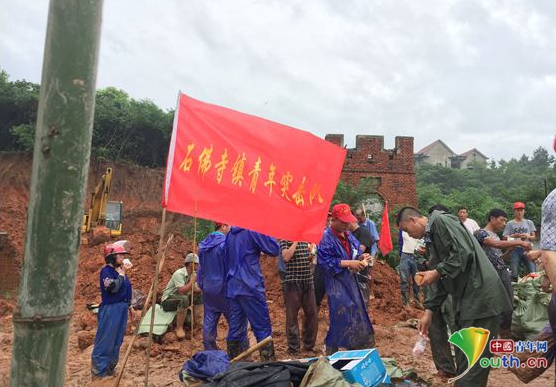 武穴市石佛寺鎮(zhèn)青年突擊隊沖鋒在抗洪一線。團湖北省委供圖