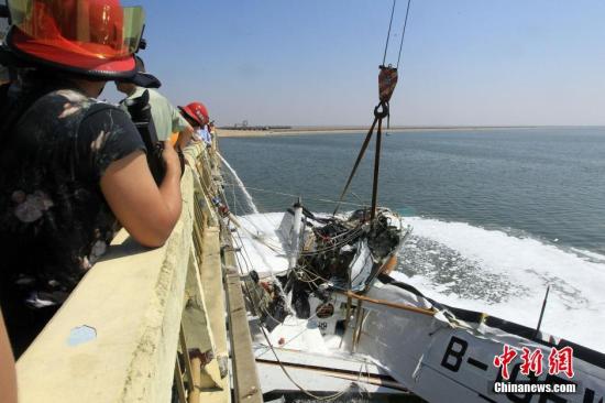 10名落水者中,除了1名機(jī)長(zhǎng)、1名陪同人員外,其余8人為應(yīng)邀體驗(yàn)水上飛行的媒體記者。 中新社記者 申海 攝