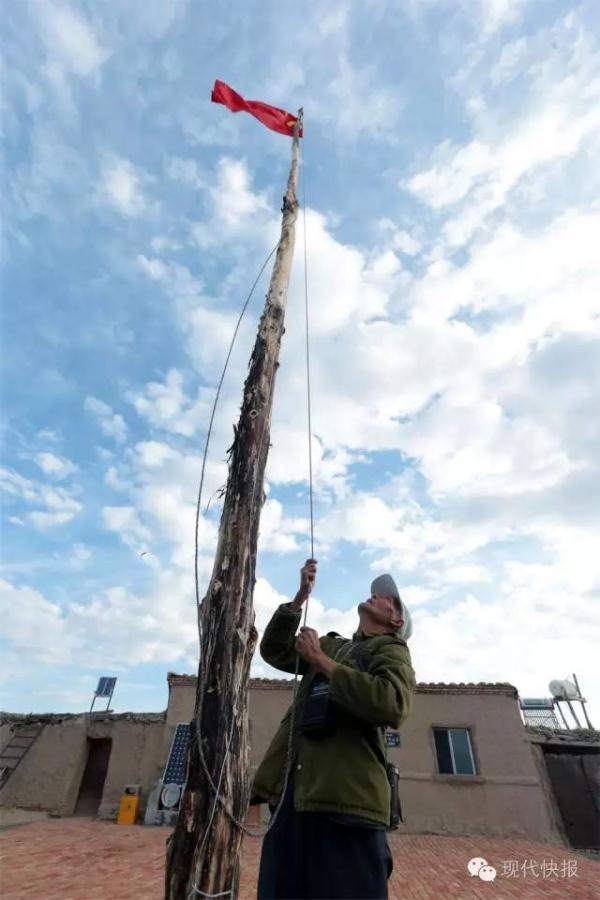 升完旗,魏德友便揣上老伴蒸的饃,
