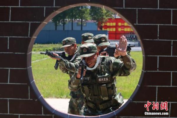 當(dāng)前,G20的號(hào)角已經(jīng)吹響,為高標(biāo)準(zhǔn)完成G20峰會(huì)安保任務(wù),全面展示武警官兵的專業(yè)素質(zhì)和部隊(duì)形象。日前,武警浙江省總隊(duì)紹興支隊(duì)官兵以G20任務(wù)為背景,開(kāi)展了反恐處突備勤、卡點(diǎn)任務(wù)執(zhí)勤、突發(fā)情況處置等多個(gè)科目實(shí)戰(zhàn)化演練。官兵正在進(jìn)行反恐演練。楊森 攝