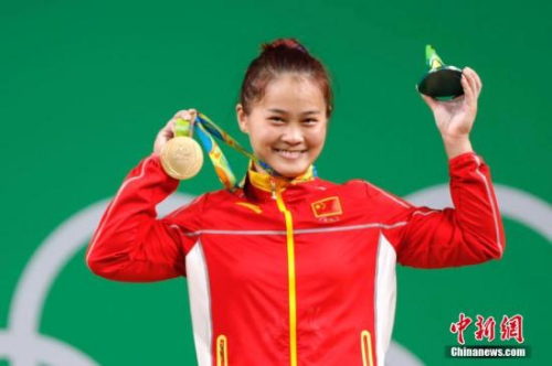 里約奧運(yùn)會(huì)女子舉重63公斤級(jí)A組比賽,中國選手鄧薇獲得冠軍。中新網(wǎng)記者 盛佳鵬 攝