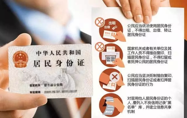 公安部等八部門近日發(fā)布《關(guān)于規(guī)范居民身份證使用管理的公告》,《公告》提出“公民應(yīng)當(dāng)依法使用居民身份證,不得出租、出借、轉(zhuǎn)讓居民身份證”;“公民應(yīng)當(dāng)增強居民身份證安全保護(hù)意識,妥善保管居民身份證,防止丟失、被盜”;“登記指紋信息的居民身份證可以有效防止被他人冒用,公民可積極主動到公安機關(guān)申請換領(lǐng)登記指紋信息的居民身份證”;“國家機關(guān)或者有關(guān)單位及其工作人員不得擅自復(fù)印、掃描居民身份證,不得扣留或者抵押公民的居民身份證”等10項條款。