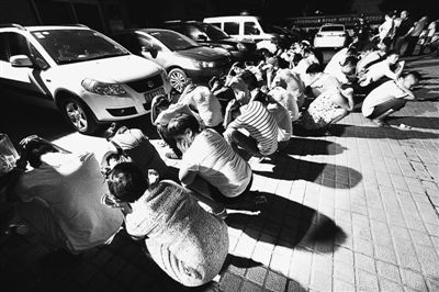 8月11日晚,安徽合肥市蜀山區(qū)荷葉地街道一廣場上,傳銷人員在等待接受處理。人民視覺