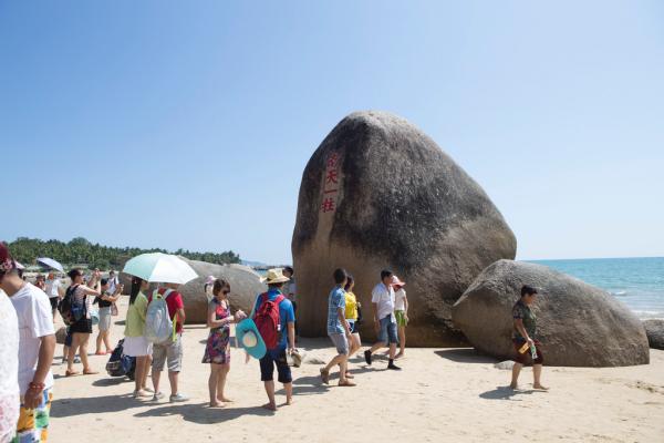 海南三亞天涯海角景區(qū),游客在南天一柱景點前游玩。澎湃資料