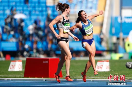 資料圖:新西蘭選手漢布林攙扶美國選手達戈斯蒂諾在賽道上前行。 中新網(wǎng)記者 富田 攝