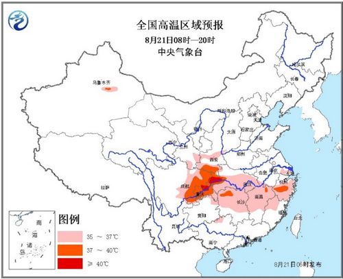 中新網(wǎng)8月21日電 據(jù)中央氣象臺網(wǎng)站消息,8月20日06時繼續(xù)發(fā)布高溫黃色預(yù)警:預(yù)計,20日白天,陜西關(guān)中及南部地區(qū)、甘肅南部、四川盆地、重慶、江漢大部、江淮南部、江南大部、貴州東北部、廣西北部和南疆盆地東北部等地有35℃以上的高溫天氣。