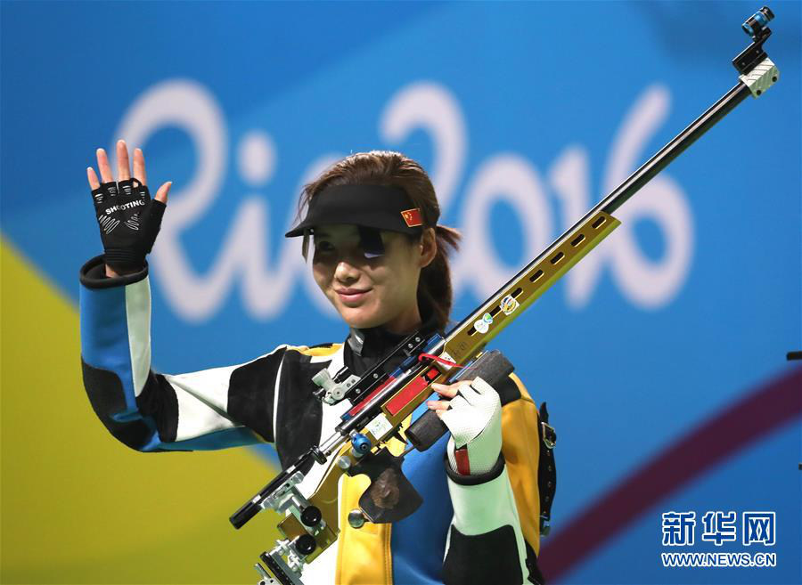 2016年8月11日,杜麗在里約奧運(yùn)會(huì)女子50米步槍三姿決賽中獲得銅牌后向觀眾致意。 新華社發(fā)