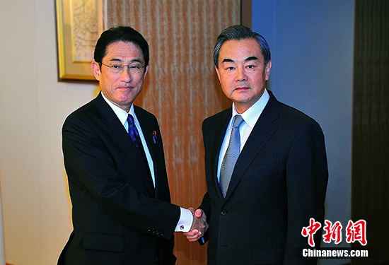 中國外交部長王毅8月24日在東京出席中日韓外長會(huì)議之后,會(huì)見了日本外相岸田文雄。中新社記者 王健 攝