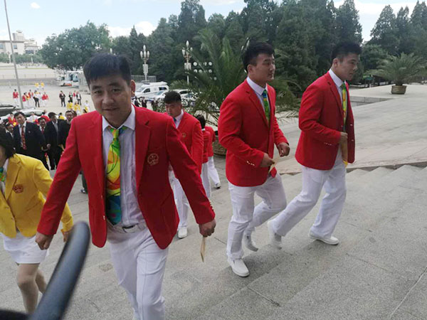 運(yùn)動(dòng)員們抵達(dá)人民大會(huì)堂