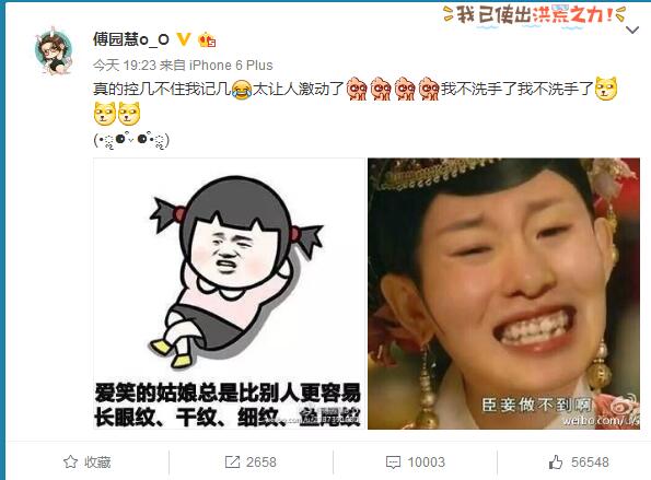 但對于傅園慧而言,今天最讓她激動的事情莫過于習近平在人民大會堂會見剛剛結束2016里約奧運征程的中國運動員代表團。今晚,新聞聯(lián)播后,她也發(fā)出了微博表示:“真的控制不住我自己,太讓人激動了,我不洗手了,我不洗手了!