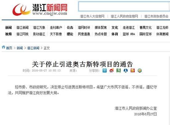 2016年6月27日上午,潛江市部分人員違反國家法律法規(guī),在未向有關(guān)部門提出申請并獲得許可的情況下,非法采取利用微信群傳播請愿書,擅自上街游行,聚集請愿等方式,要求政府停止引進(jìn)奧古斯特項目,擾亂社會公共秩序,造成了很壞的社會影響。