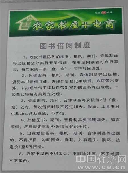 鳳凰村農(nóng)家書(shū)屋+電商圖書(shū)借閱制度牌。