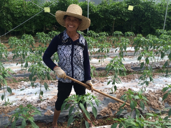 李考鳳,興國縣杰村鄉(xiāng)含田村的村民,見到她時,正在蔬菜大棚里勞作。被問及如今的生活,她一下打開了話匣子:“以前種地只夠家里吃,沒什么收入,現(xiàn)在農(nóng)閑時在這兒種菜,一個月有1800多元呢”。她樸實的笑容讓人感到一陣溫暖。