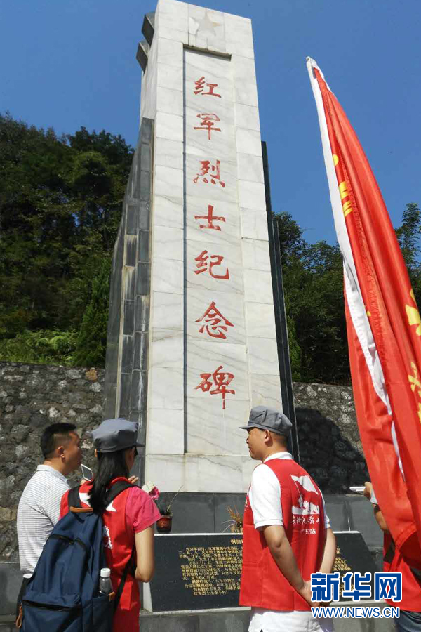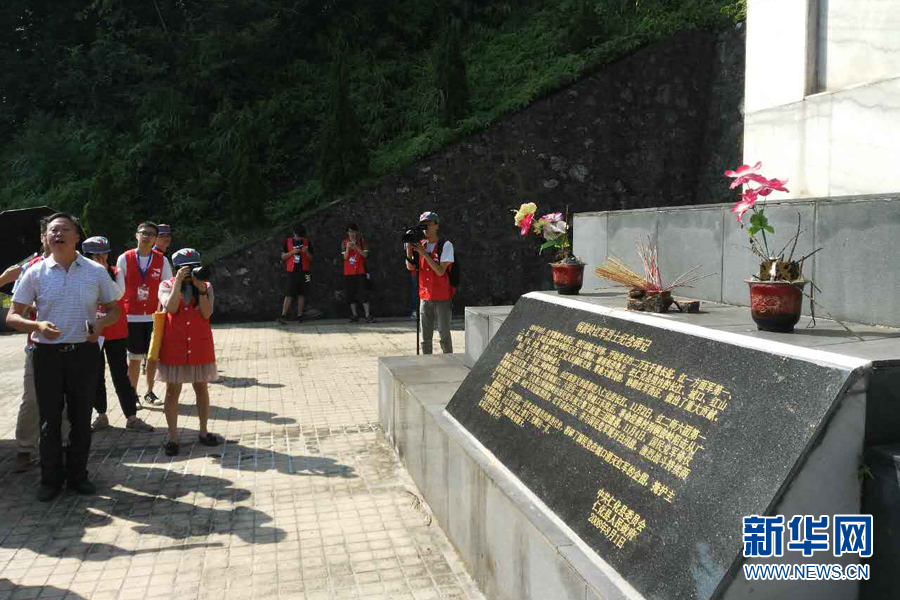 圖為30日上午,媒體記者參觀紀(jì)念碑緬懷紅軍先烈。新華網(wǎng)記者 盧鑒攝