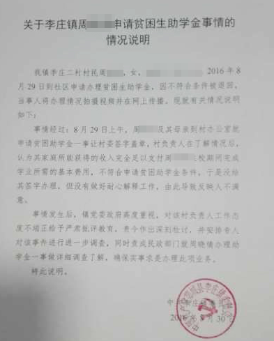 原標(biāo)題:臨沂郯城被曝拆遷捆綁貧困助學(xué)金 回應(yīng):學(xué)生條件不符申請(qǐng)被退