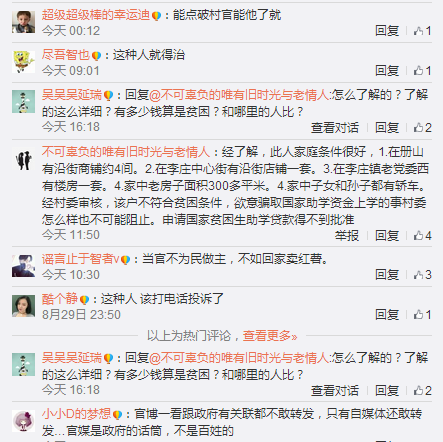 但也有網(wǎng)友在爆料微博下面留言稱,視頻有剪輯,希望大家能夠鑒別真?zhèn)。網(wǎng)友“不可辜負(fù)的唯有舊時(shí)光與老情人” 說,經(jīng)了解,此人家庭條件很好,有沿街商鋪約4間,在李莊中心街有沿街店鋪一套,在李莊鎮(zhèn)老黨委西有樓房一套,家中老房子面積300多平米,家中子女和孫 子都有轎車。經(jīng)村委認(rèn)真審核,該戶不符合貧困條件。欲意騙取國(guó)家助學(xué)資金。