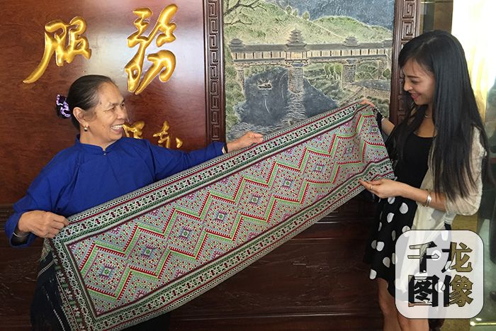 8月30日,國家級非遺項(xiàng)目侗錦代表性傳承人粟田梅和侄女一起向記者展示侗錦產(chǎn)品。侗錦自古以來以母女間傳承為主,一方侗錦,連接起兩代侗家女對這項(xiàng)傳統(tǒng)技藝生生不息的熱愛。千龍網(wǎng)記者 包萌 攝